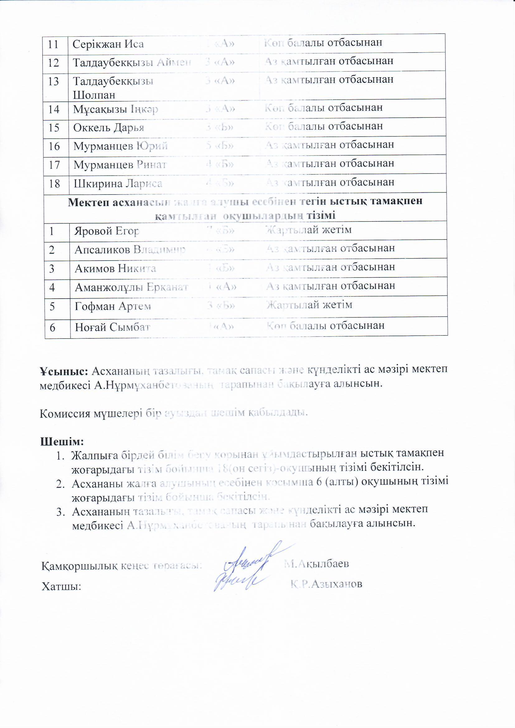 Board of Trusteesтің №3 хаттамасы » Панфилов атындағы орта мектеп